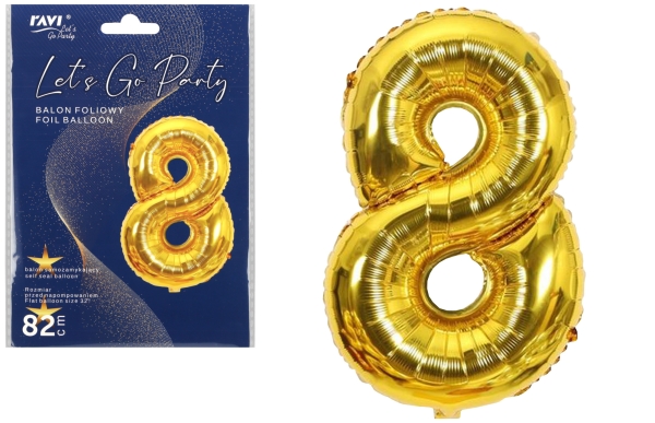 Let’s Go Party Foil balloon 60 cm NUMBER 8, 22133 gold